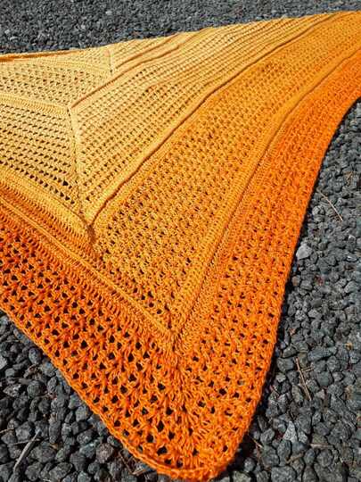 Für dieses Tuch braucht man Kenntnisse zu Luftmaschen, Stäbchen, Doppelstäbchen, vordere Reliefstäbchen, feste Maschen und den Mut diese zu kombinieren.