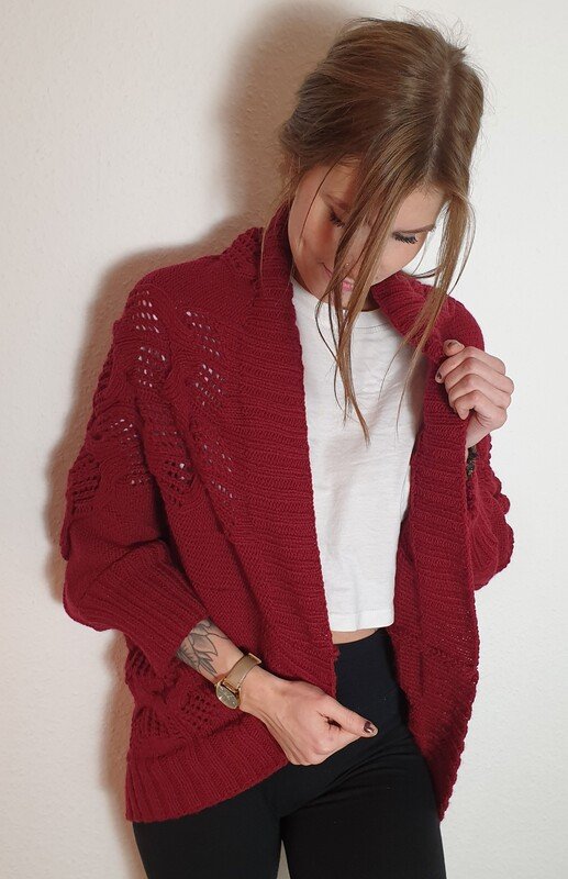 Strickanleitung Seelenwärmer Loch/Zopf weinrot