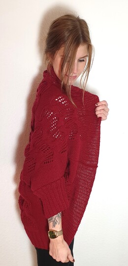 Hier habe ich eine Mischung von Lochmuster, Zopfmuster und linken Maschen entworfen.