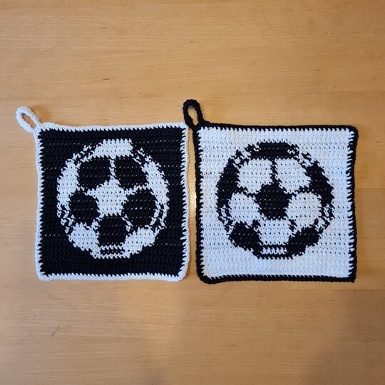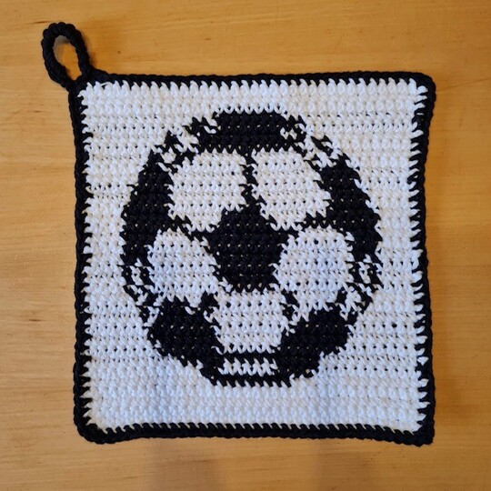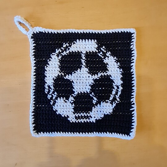 Mit der von mir verwendeten Wolle hat der Topflappen eine Größe von ca 20cm x 20cm.