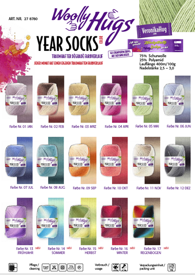 Woolly Hugs YEAR SOCKS (75% Schurwolle, 25% Polyamid, Lauflänge ca. 400m/100g)