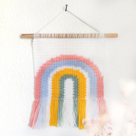 Dieser schöne Wandbehang kann individuell mit deinen Lieblingsfarben gehäkelt werden, sodass er sich auch gut in ein bestehendes Farbkonzept einfügt.