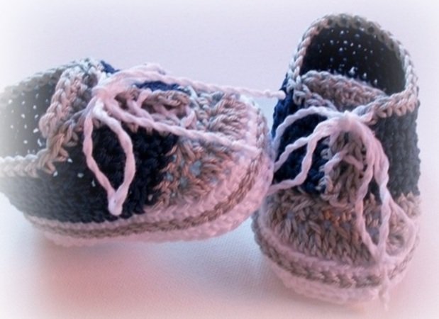 Mit dieser Anleitung kannst Du tolle,trendige Turnschuhe häkeln für Deinen kleinen Liebling.