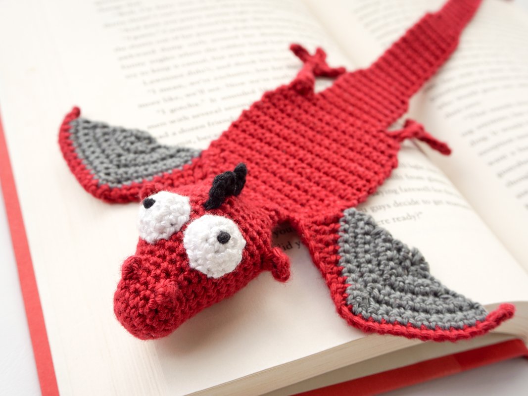 Das fertige Lesezeichen hat eine Länge von 32 cm. Der fertige Mini Drache hat eine Höhe von 5,5 cm. Der fertige Mini Noso Drache hat eine Höhe von 6 cm.