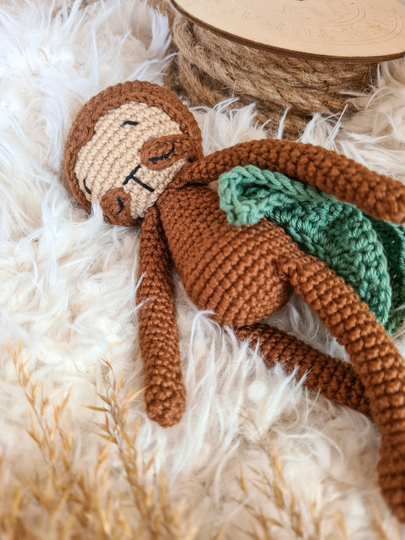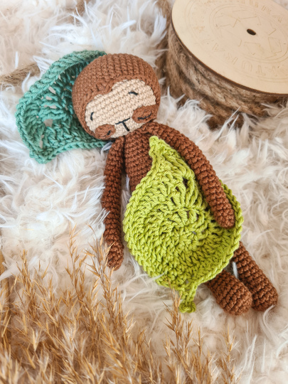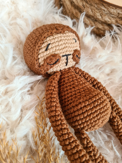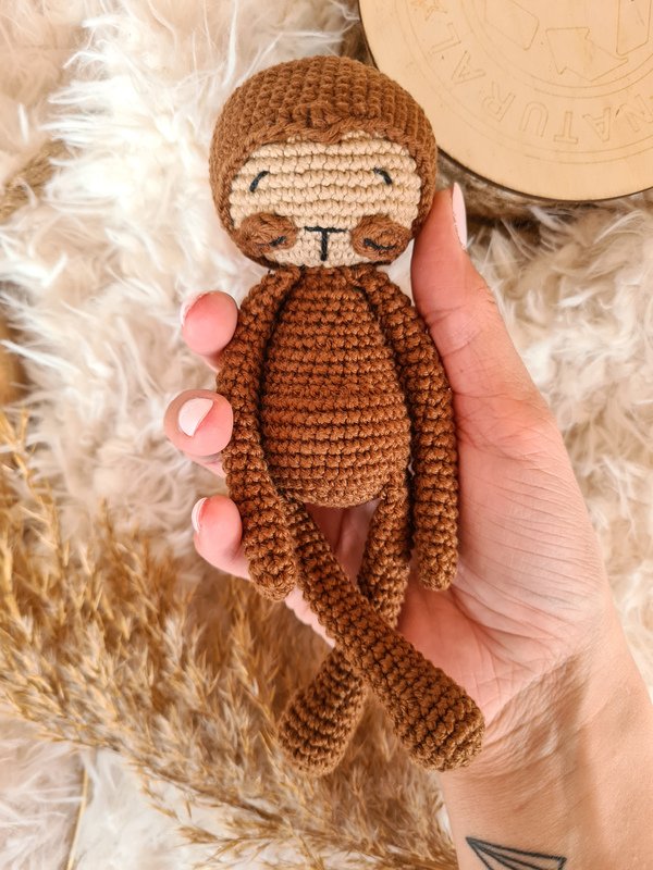 Das fertige Faultier ist bei Verwendung von Wolle 50g/125m, ca. 20 cm groß.