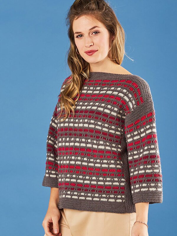 Einzigartig und stylisch - das ist unser gehäkelter Pullover im Mosaik-Look! Durch die Kombination von zwei verschiedenen Garnen entsteht ein tolles Farbenspiel, das den Pullover zu einem wahren Hingucker macht. Durch das besondere Muster und die hochwertige Garne ist unser Häkelpulli nicht nur optisch ansprechend, sondern auch besonders angenehm zu tragen.