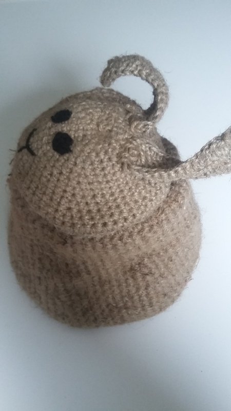 Jutegarn ist ein Naturmaterial, das seine Tücken hat. Der Faden ist mal dicker und mal dünner, an manchen Stellen sehr fest oder dick. Es ist nicht ganz so einfach, damit zu arbeiten und obwohl die Anleitung nicht anspruchsvoll ist, halte ich das Projekt für nicht anfängertauglich.