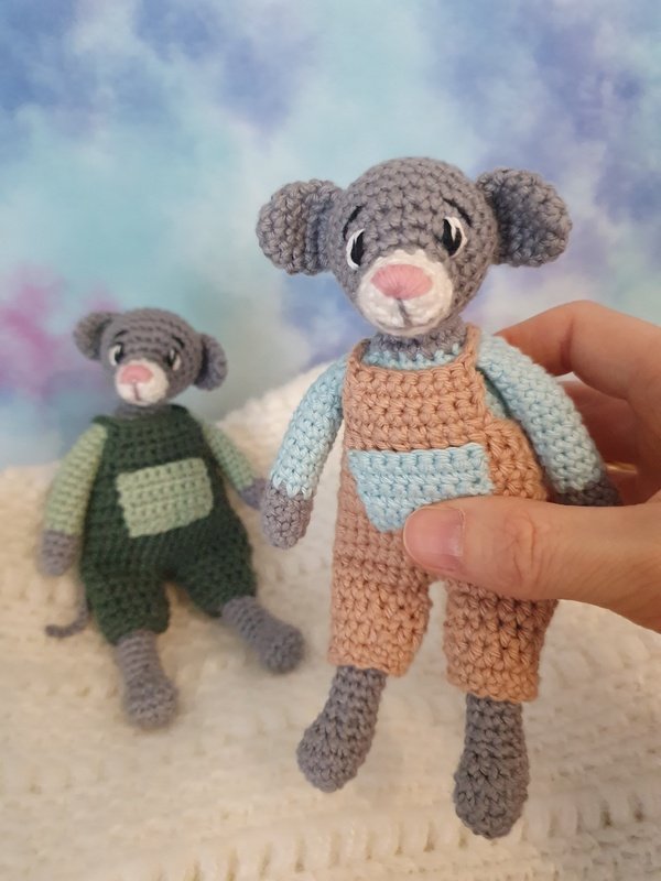 Diese Anleitungen sind alle BASISANLEITUNGEN. Nach und nach findest du in meinen Shops Erweiterungspakete mit weiteren Kleidern und Accessoires für die Mäuse.