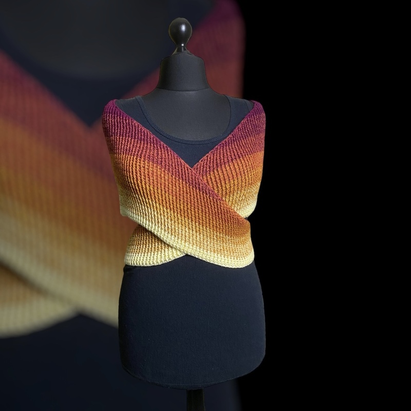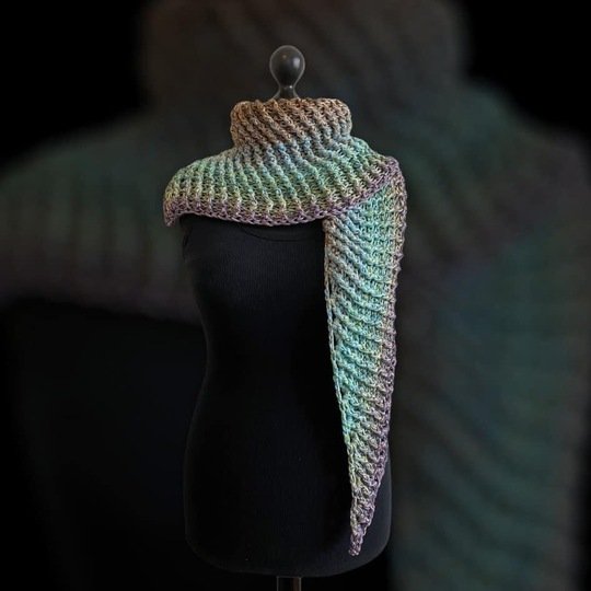 Das Talvi ist ein kuscheliges Dreieckstuch aus Reliefstäbchen.