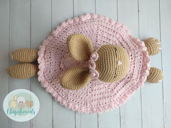 Das PDF enthält eine Anleitung mit leicht lesbaren Bildern zur Herstellung einer niedlichen Kuscheldecke Haschen.