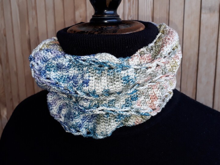 Die Anleitung ist ausgeschrieben und mit Fotos versehen. So kannst Du Schritt für Schritt Deinen Loop häkeln.
