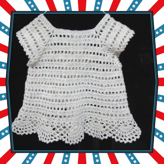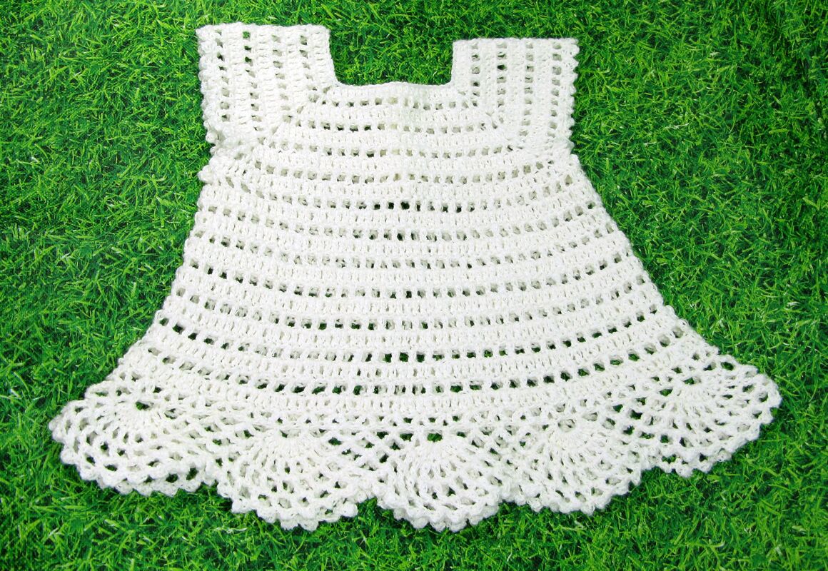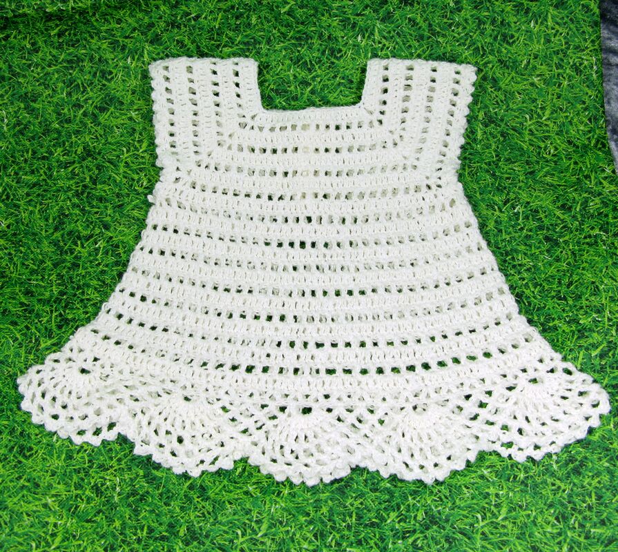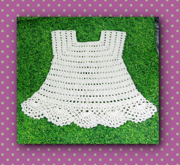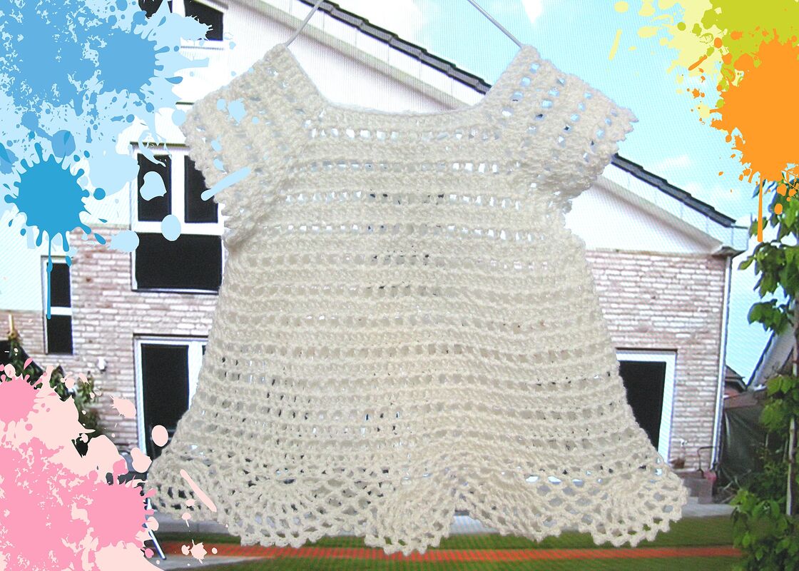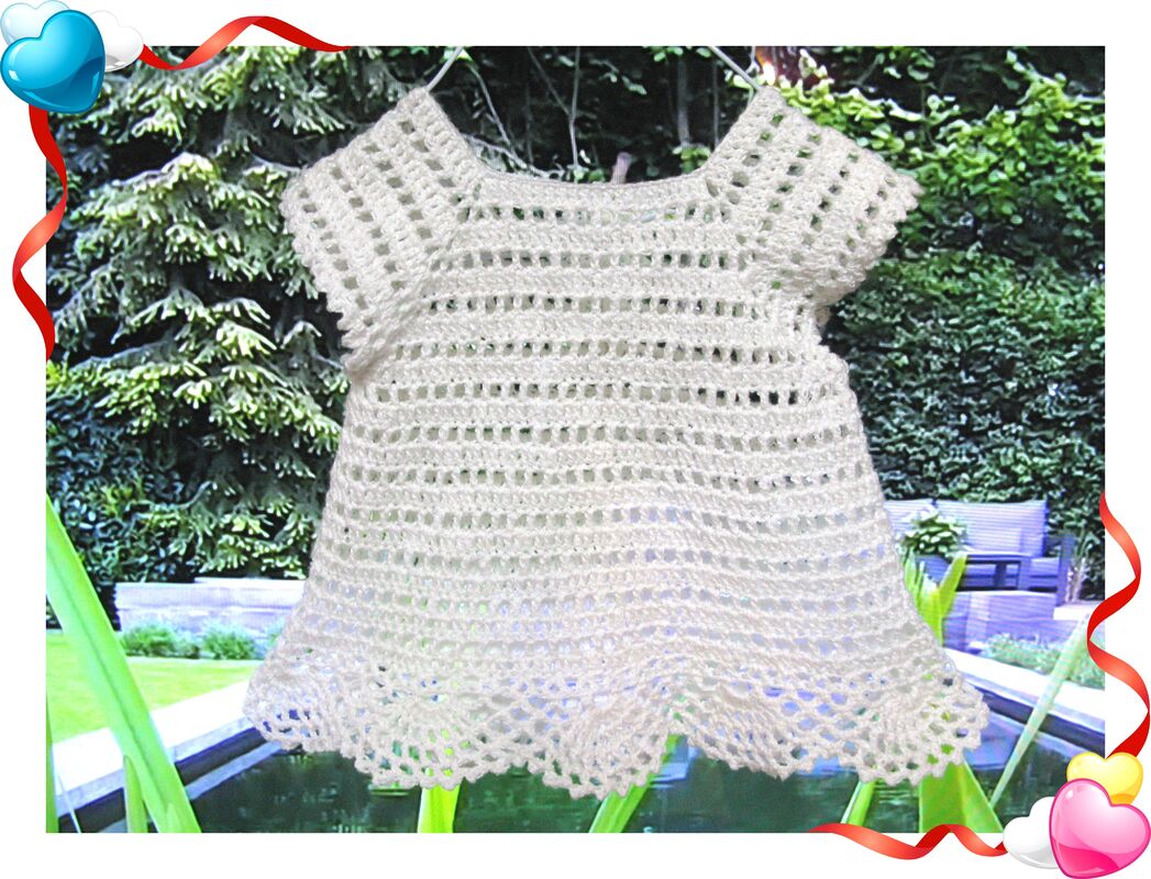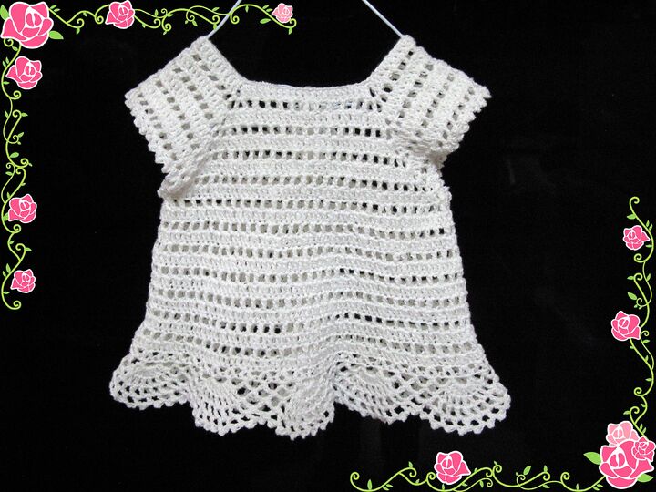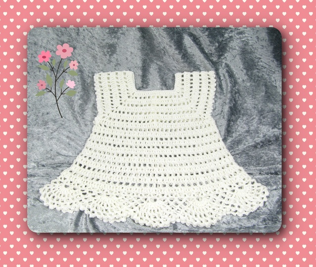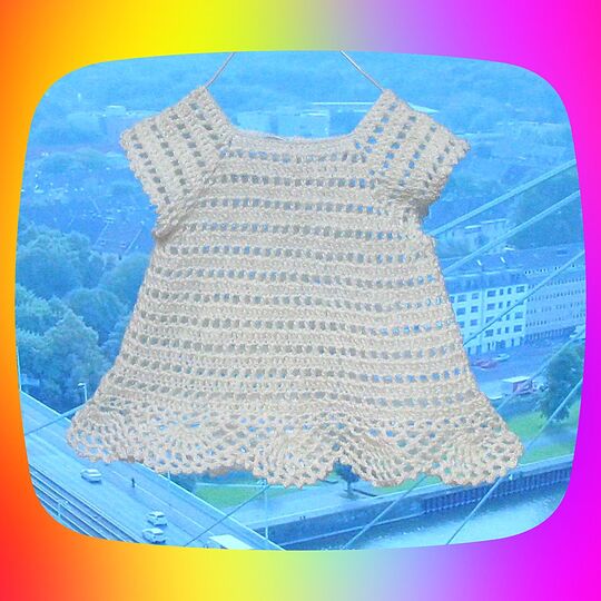 Das Babykleid wird von oben nach unten gehäkelt in RVO