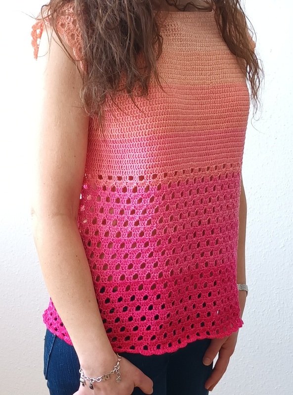 Das Shirt ist leicht an alle Größen anpassbar und kann von Größe S-XXXL gehäkelt werden.