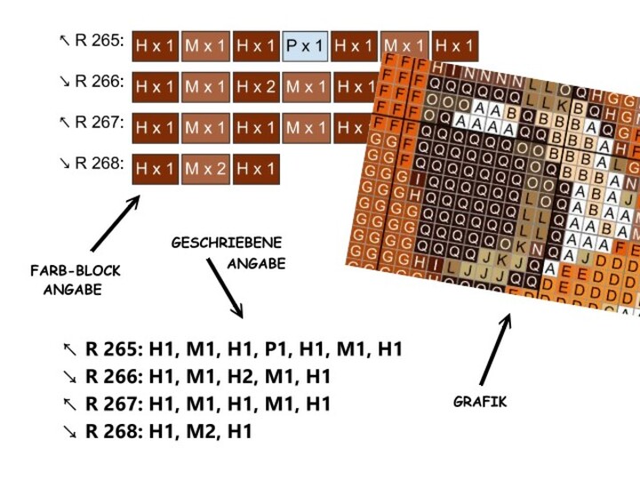 -farbige Zahlen-Blöcke für jede Zeile für C2C-Technik