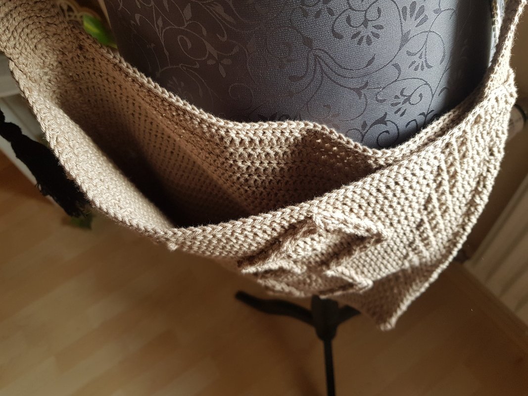 Im Prinzip ist man in der Wahl der Wolle und Nadelstärke frei, die Abmessungen meiner Beispieltasche dienen der Orientierung.