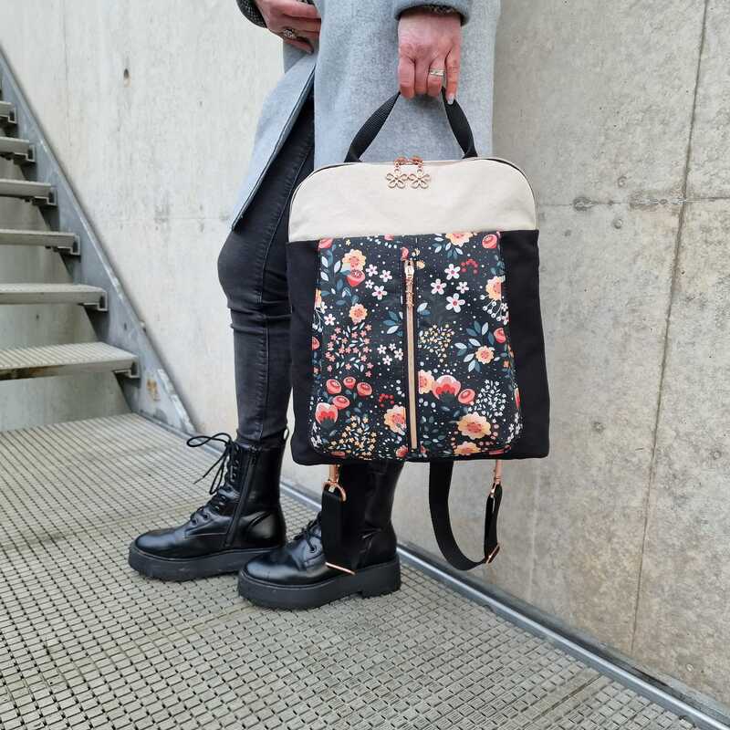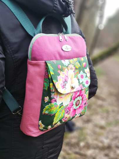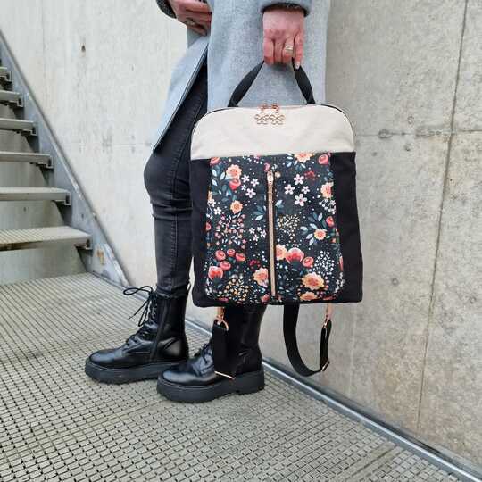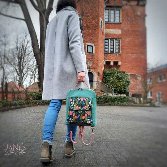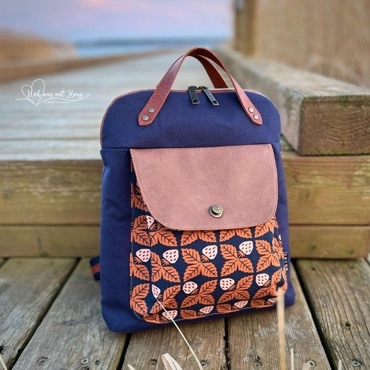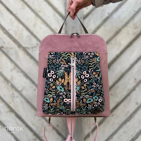Nevi ist ein schicker Rucksack in praktischer Größe und mit außergewöhnlicher Optik. Nicht zu groß und nicht zu klein eignet er sich für viele Gelegenheiten und bietet wie immer verschiedene Gestaltungsmöglichkeiten, um ihn zu deinem ganz persönlichen Begleiter zu machen. Die Front kannst du entweder mit einem geräumigen Reißverschlussfach oder einem Aufsatzfach mit Verschlussklappe versehen. Darin lassen sich auch etwas größere Dinge, die schnell griffbereit sein sollen, prima verstauen. Geschlossen wird der Rucksack mit einem Reiß-verschluss, im Inneren hast du die Wahl zwischen verschiedenen Fächern, in denen alles an seinem Platz bleibt und mit denen du immer den Überblick behältst. In der Anleitung sind außerdem zwei unterschiedliche Trägerbefestigungen, sowie eine zusätzliche Henkelalternative aus Lederriemen enthalten.
