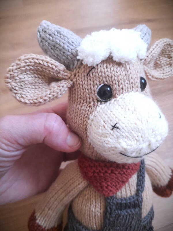 Die fertige Kuh hat eine Größe von ca. 33 cm. Natürlich kann die Größe materialbedingt variieren.