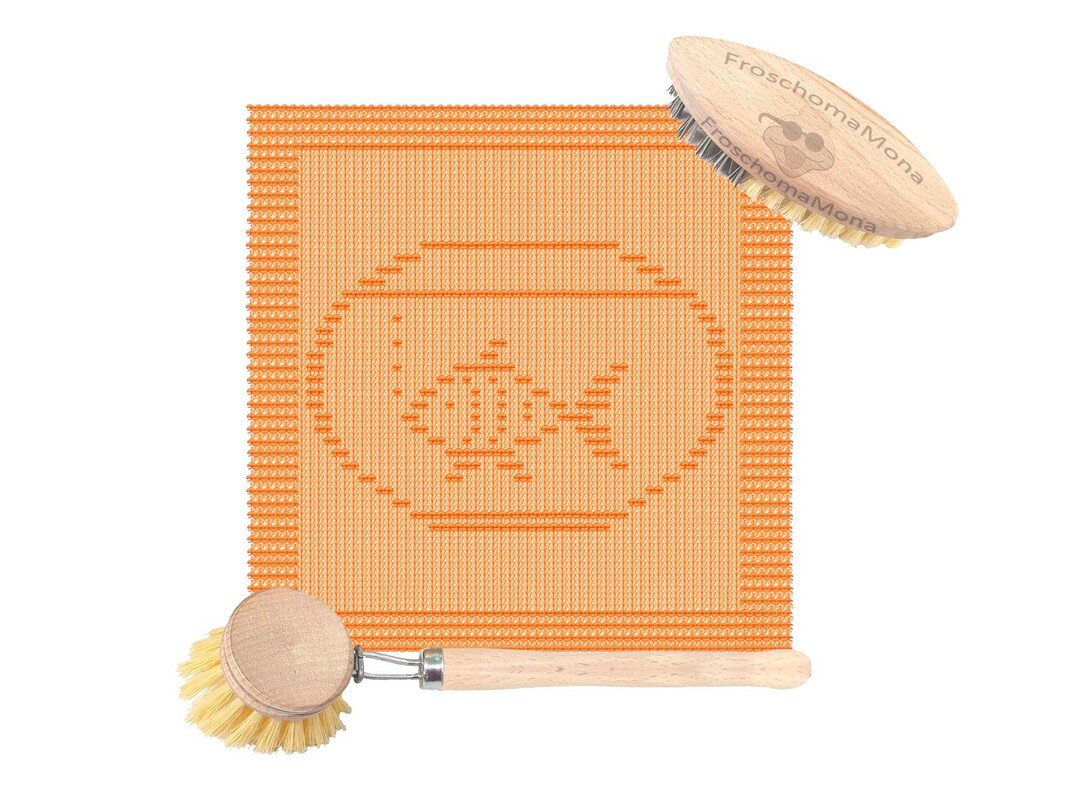 Spültücher und Topflappen mit eingestrickten Motiven sind ein wahrer Hingucker in der Küche.