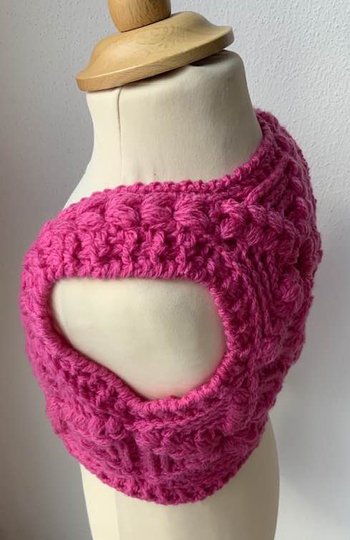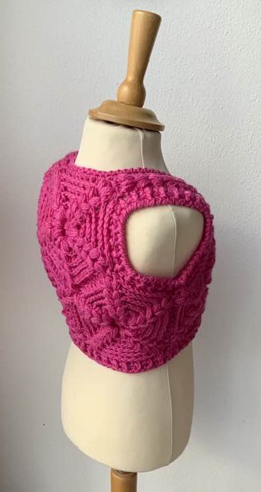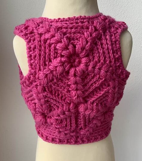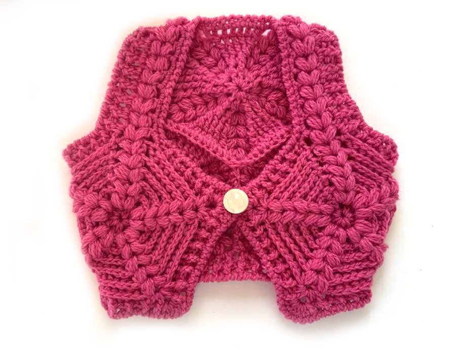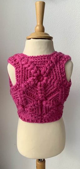 BoleroWeste NONI aus 5 Grannys mit dem raffinierten Muster aus Reliefstäbchen und Puffstichen.