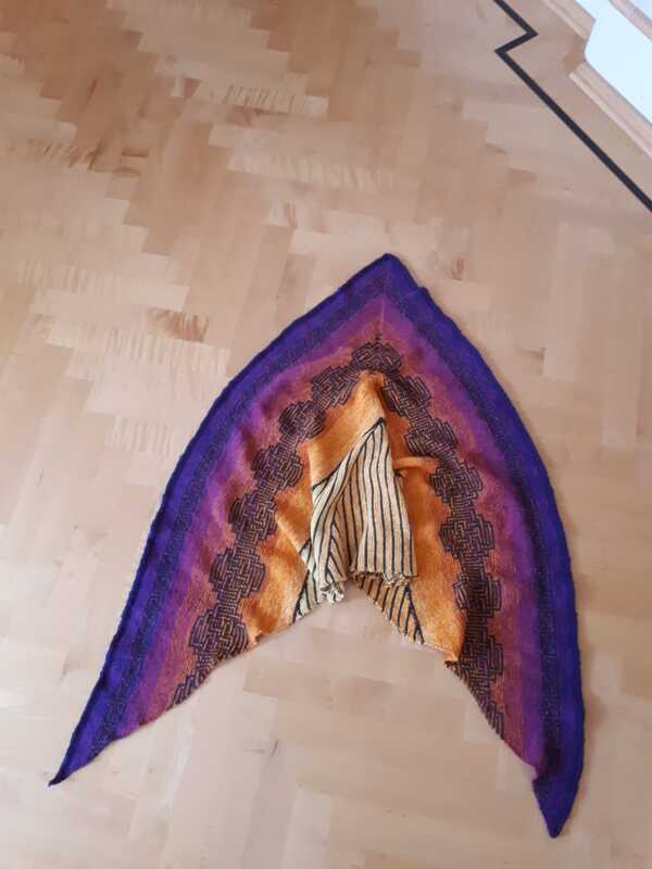 Das Tuch hat eine Spannweite von knapp 200cm und eine Tiefe von 77cm