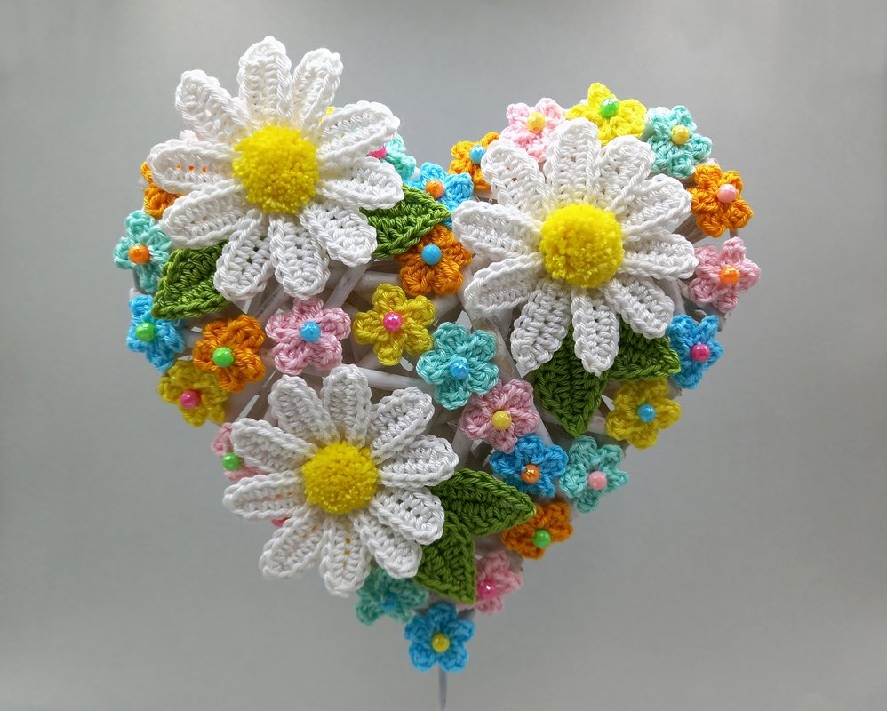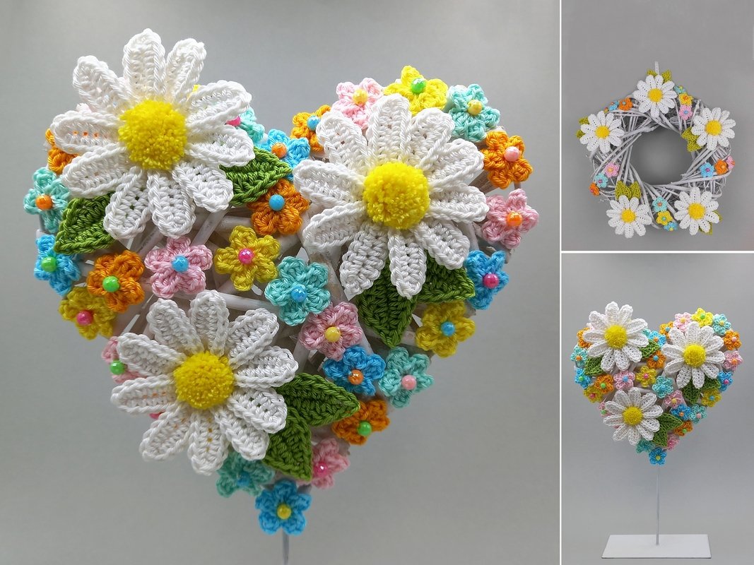 Die PDF Datei umfasst zusätzlich zur schriftlichen Häkelerklärung auch die Häkelschriften für Blumen und Blätter und natürlich sehr viele detaillierte und erklärte Fotos, damit Du diese schönen, farbenfrohen Dekorationen ganz einfach erfolgreich nachmachen kannst.