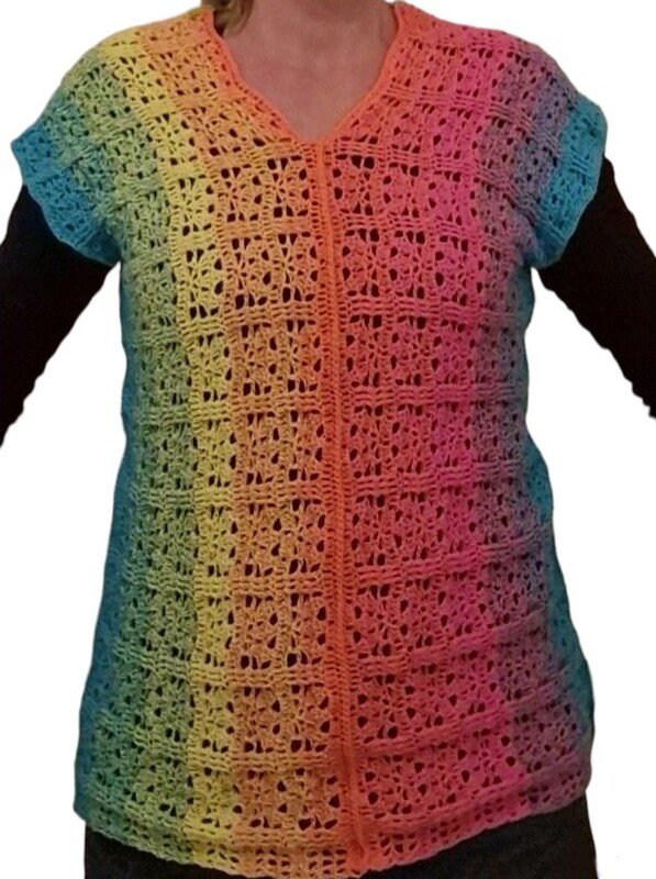 Die Tunika wird nicht in den klassischen Kleidergrößen gehäkelt.