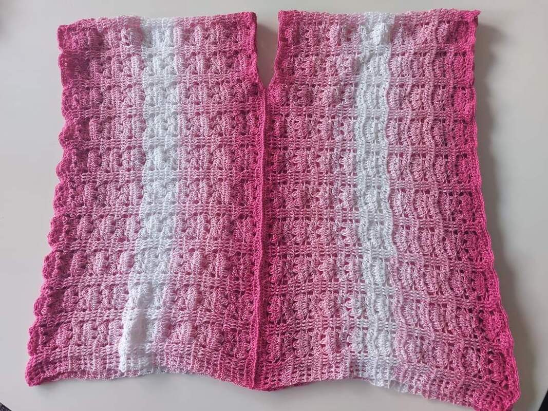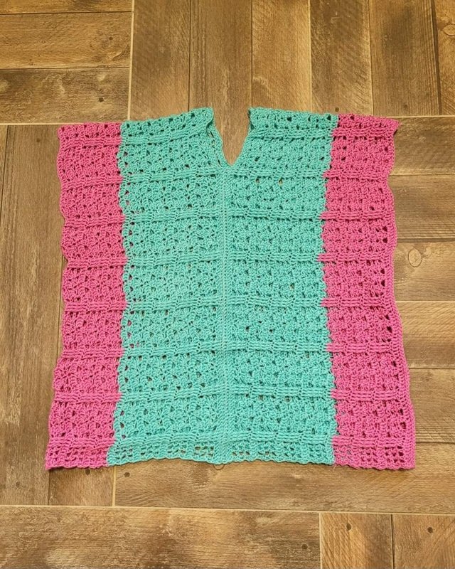 Die Tunika wird aus 2 Teilen in Reihen gehäkelt.