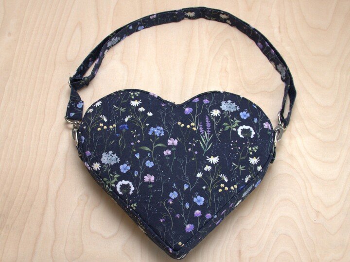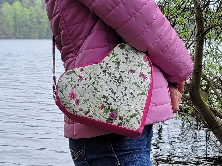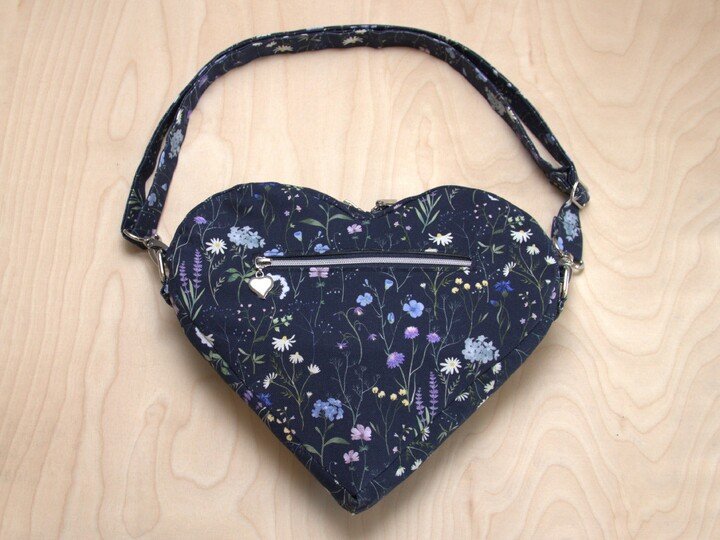Die Herztasche hat einen abnehmbaren Tragegurt und ermöglicht drei unterschiedliche Einhakpositionen, wodurch sie entweder als Crossbag oder als Handtasche getragen werden kann. Sie wird sicher mit einem Reißverschluss zur Mitte hin geschlossen und enthält zwei separate Reißverschlusstaschen (eine außen, eine im Innenfutter). Außerdem kann sie mit einem innenliegenden Karabinerhaken für einen Schlüssel genäht werden. Die Herztasche ist ein schönes und gleichzeitig praktisches Geschenk zum Muttertag, zum Geburtstag oder zu Weihnachten.