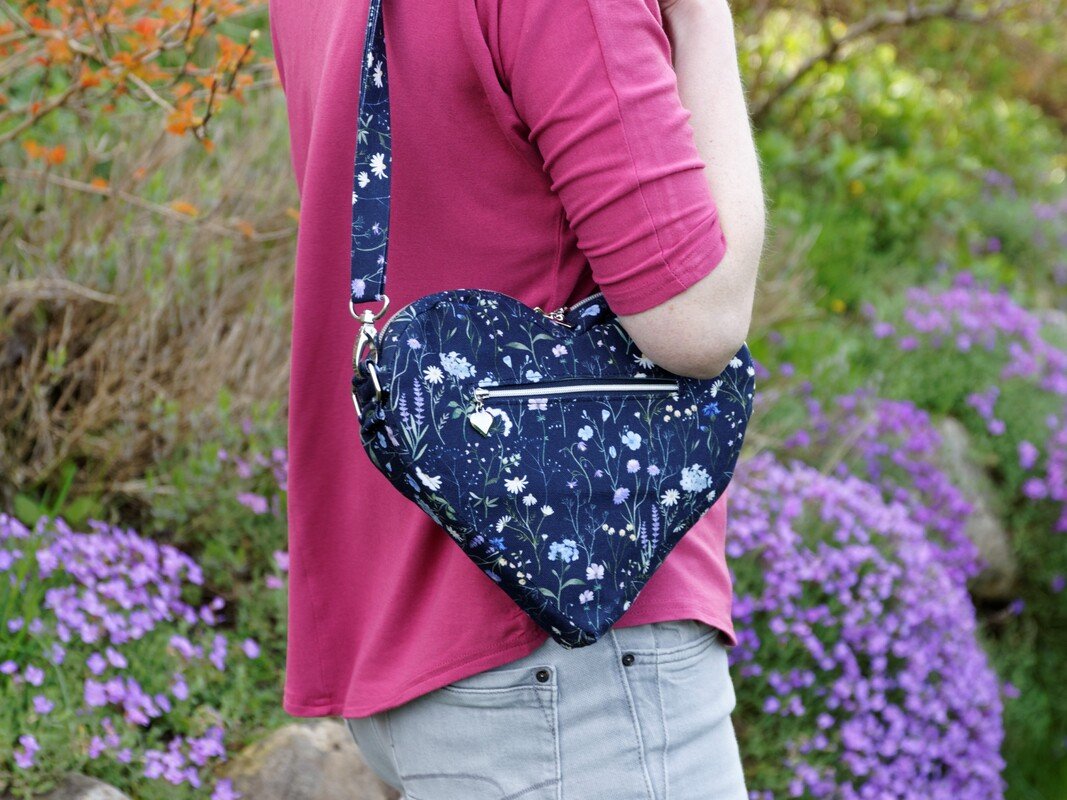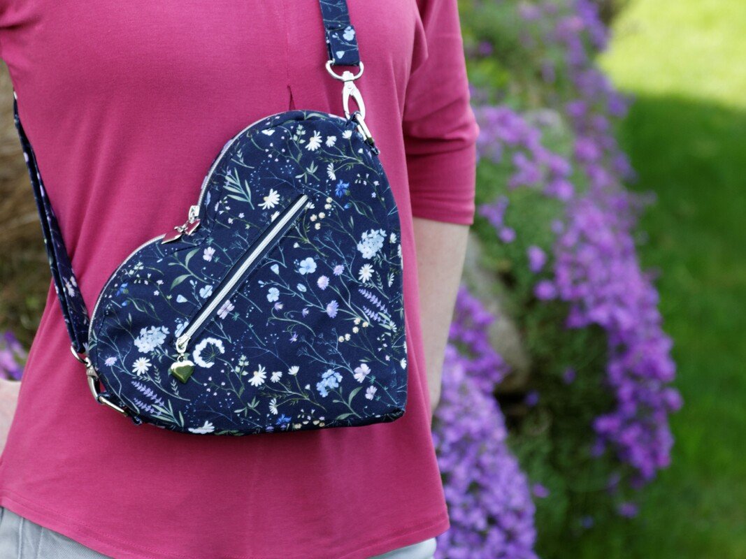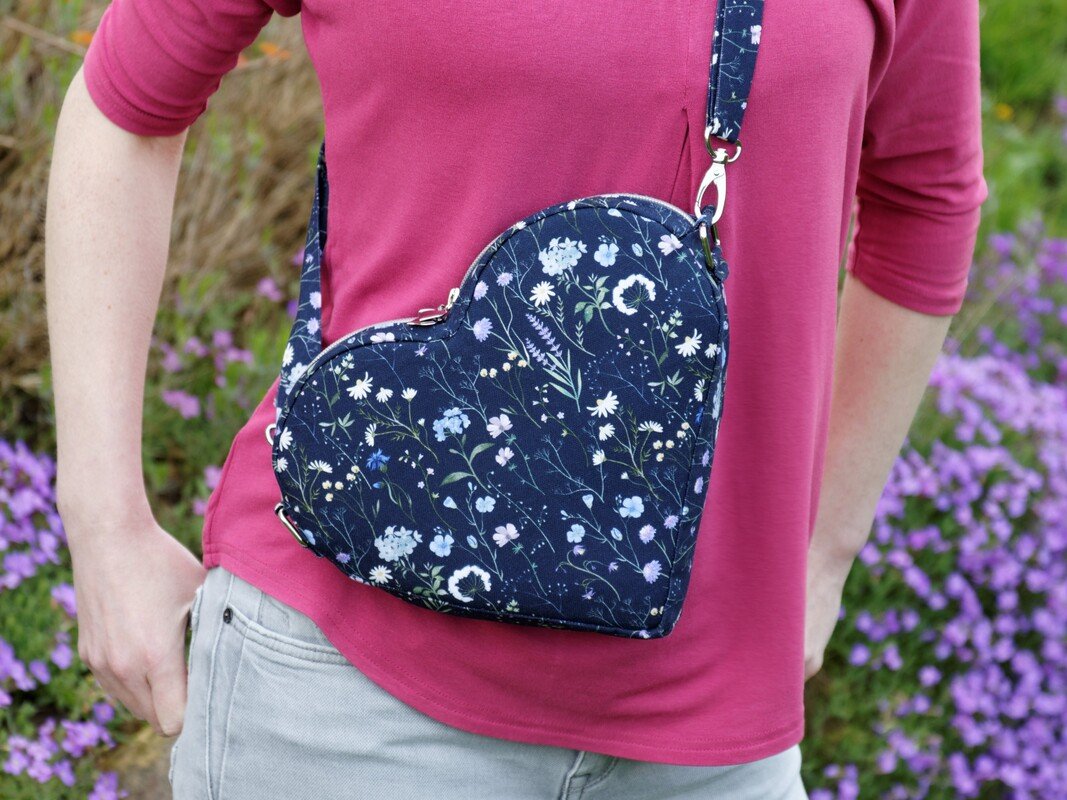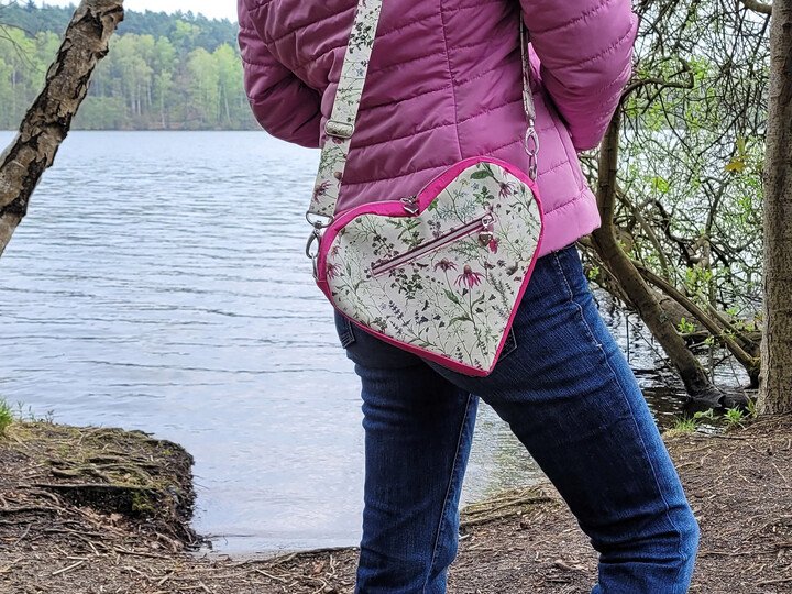Du hast Dir schon immer eine Tasche in Herzform gewünscht? Dazu noch mit praktischem Reißverschluss gegen unerwünschte „Eingriffe“, mit unterschiedlichen Tragemöglichkeiten sowie Platz für Handy, Geldbeutel und Schlüssel? Dann habe ich hier das Richtige für Dich! Dieses Schnittmuster ist eine kleine Herausforderung für fortgeschrittene Näherinnen, aber am Ende hast Du eine wunderschöne Tasche :-)