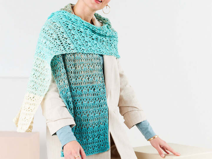 Entdecke die neueste Häkelanleitung für eine Stola mit sanftem Farbverlauf und einem tollen luftigen Muster. Diese Stola ist das perfekte Accessoire für kühle Frühlings- und Sommerabende. Die Anleitung ist einfach zu befolgen und die Stola ist schnell fertig gestellt. Sie benötigen nur hochwertige diesen tollen Bobbel um dieses wunderschöne Stück zu erschaffen.