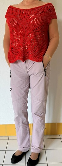 Luftmaschen, feste Maschen, halbe Stäbchen, Stäbchen, Zu- und Abnahmen, Häkelschrift lesen. Das Shirt ist nicht für Anfänger geeignet!