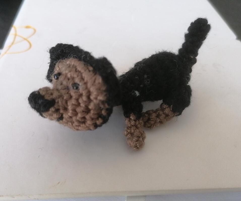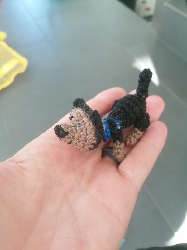 Auf Anfrage, ob ich einen Hund nachhäkeln kann, ist dieser kleine Yorkshire entstanden. Enspricht nicht ganz so, wie ich es gewünscht habe, aber süss ist er allemal :-)