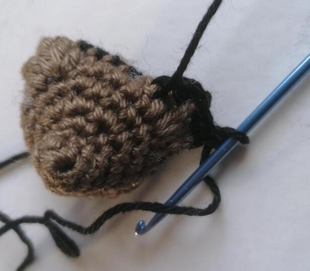 Abnehmen (2 feste Maschen zusammenhäkeln),