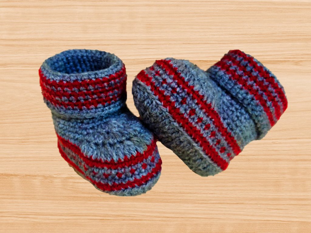 Es wird erklärt: 5 Seiten, Beschreibung, Baby-Stiefelchen, Abbildungen.