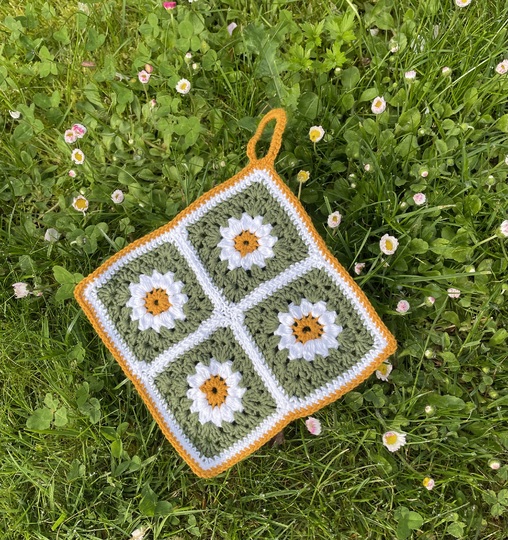 Du liebst Granny Squares? Dann ist der Topflappen Daisylove genau das Richtige für dich. Tobe dich in deinen Lieblingsfarben aus, er ist auf alle Fälle ein Blickfang für deine Küche.