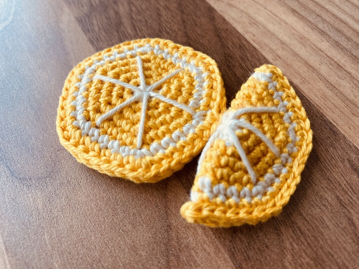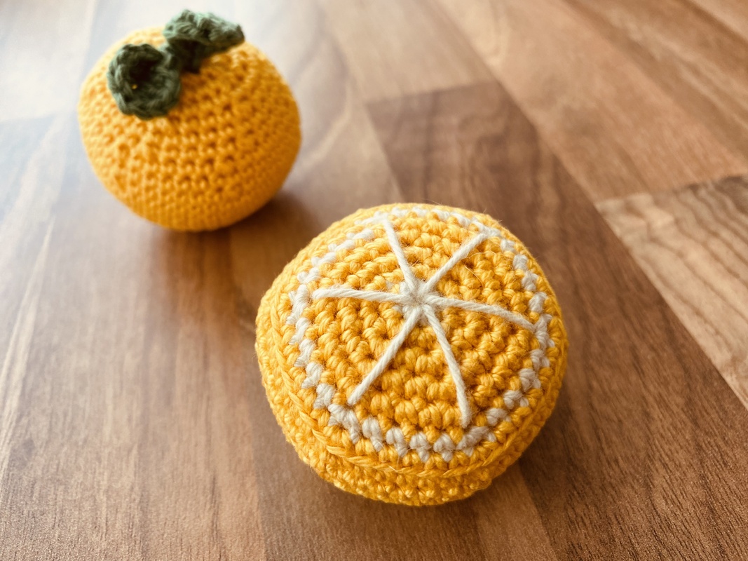 Mit Hilfe dieser Anleitung kannst du eine Orangen, eine halbe Orange oder ganze und halbe Scheiben einer Orange selbst häkeln.