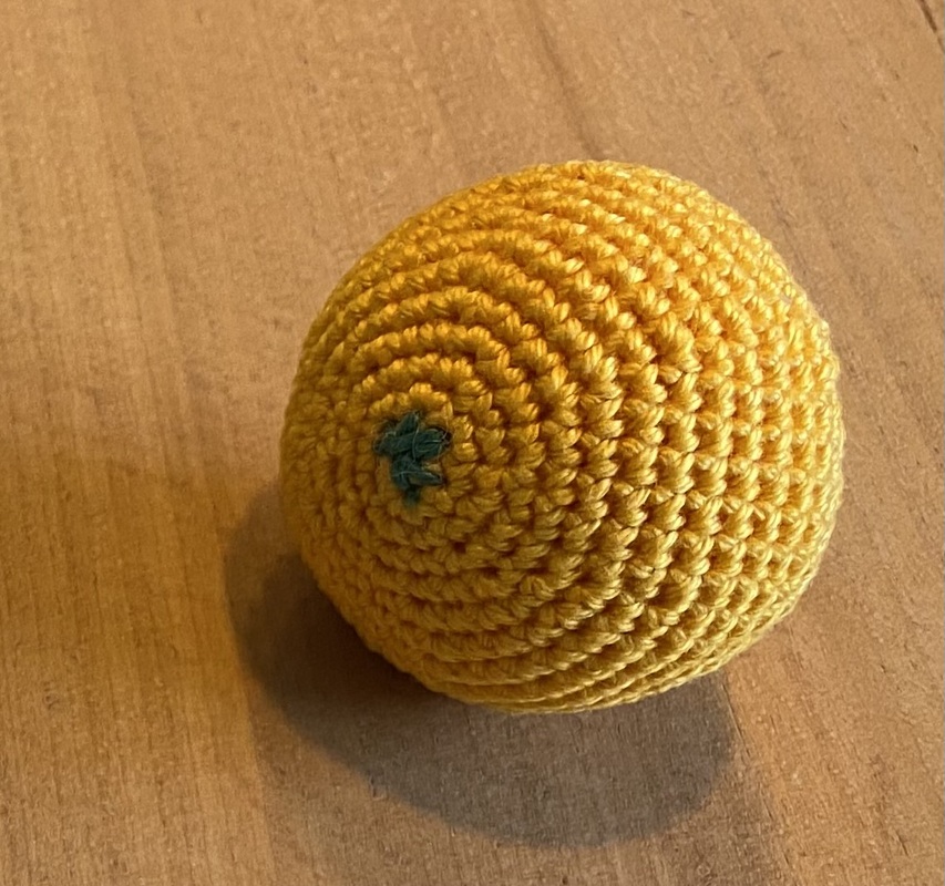 Je nachdem welches Garn und welche Häkelnadelstärke verwendet wird, kann die Größe der Orange variieren. Dickeres Garn und eine größere Nadel macht das Ergebis größer. Auch die eigene "Handschrift" wie fest man häkelt, beeinflusst die Größe.