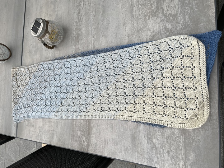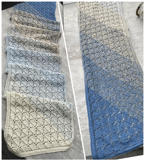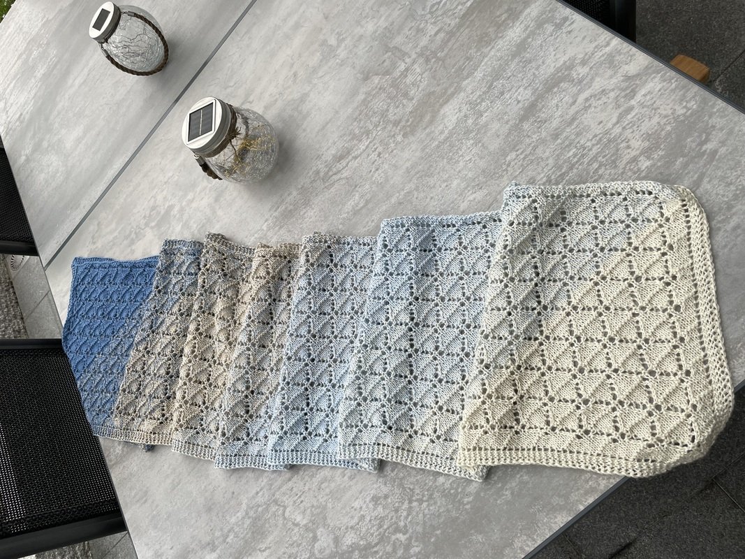 Die Stola wird von einer Ecke zur anderen gestrickt. Die Breite kann dabei individuell gestaltet werden.