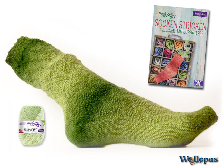 Die Modelle haben sehr effektvolle und dennoch meist einfache Muster, die durch die wunderschönen Farbverläufe der Woolly Hugs YEAR SOCKS Garne besonders schön zur Geltung kommen. Überwiegend gibt es rechts/ links Muster, jedoch sind auch einige dabei, die etwas herausfordernder sind.
