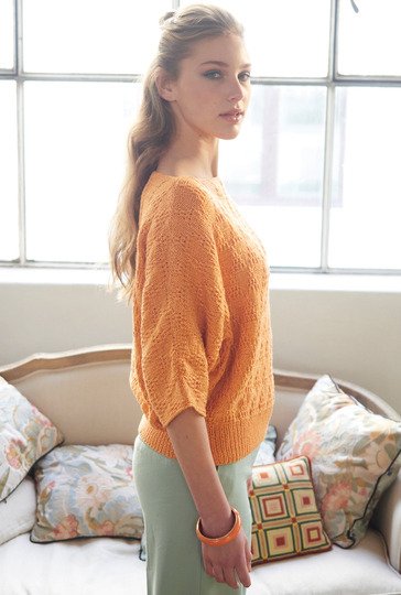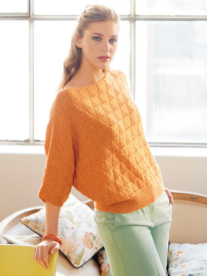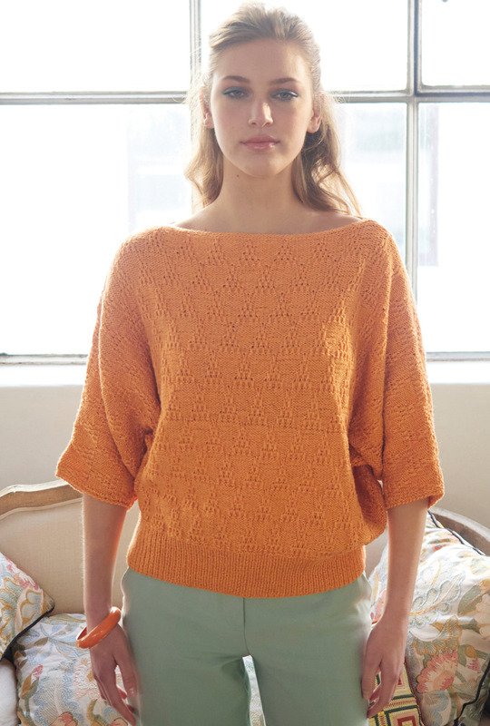 Dieses tolle Projekt ist ein echter Hingucker. Die Fledermausärmel und der U-Boot-Ausschnitt sind super lässig und das All-Over-Hebemaschenmuster ist spannend zu stricken. Gearbeitet wird das Vorder- und Rückteil separat mit direkt angestrickten Ärmeln. Durch den interessanten Schnitt wirkt der Pullover besonders lässig und sitzt durch den breiten unteren Bund perfekt. Die dreiviertellangen Ärmel sind locker und weit geschnitten. Perfekt für einen lauen Sommerabend. Das Garn gibt es bei Lana Grossa und gestrickt wird in der Nadelstärke 3. Mit der Anleitung kannst du direkt loslegen und dein neues Lieblingsteil in den Größen 38/49, 42/44 oder 46/48 stricken.