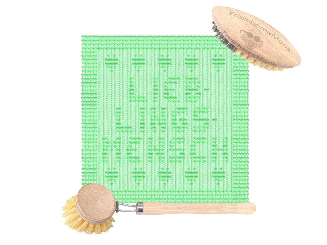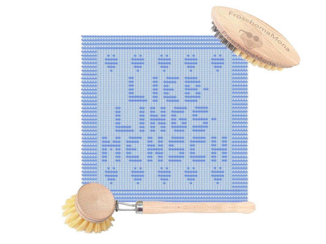 Mit dieser Anleitung zeige ich dir, wie du dieses Motivtuch mit Statement „Lieblingsmensch“ stricken kannst.