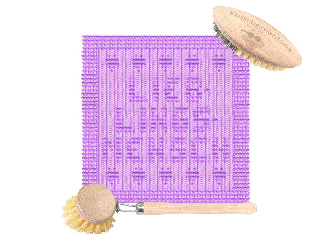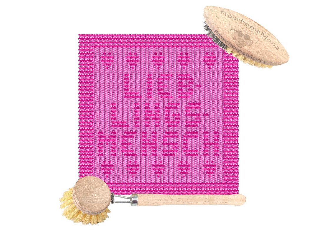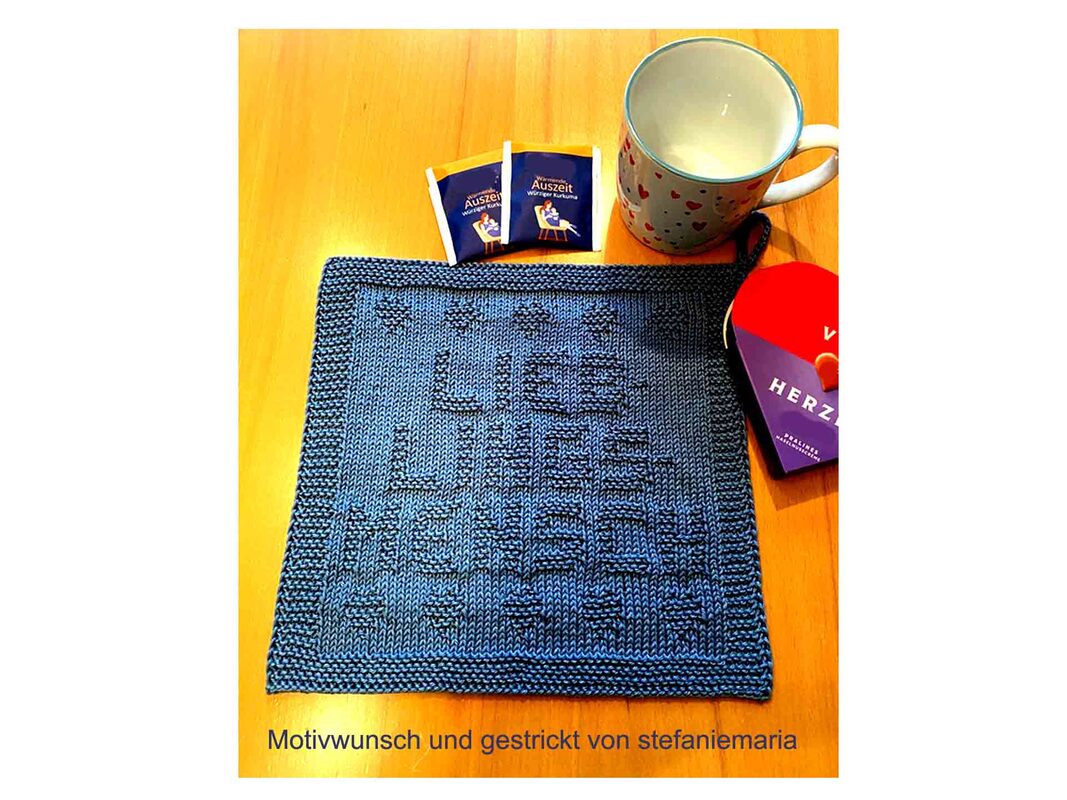 Spültücher und Topflappen mit eingestrickten Motiven sind ein wahrer Hingucker in der Küche.