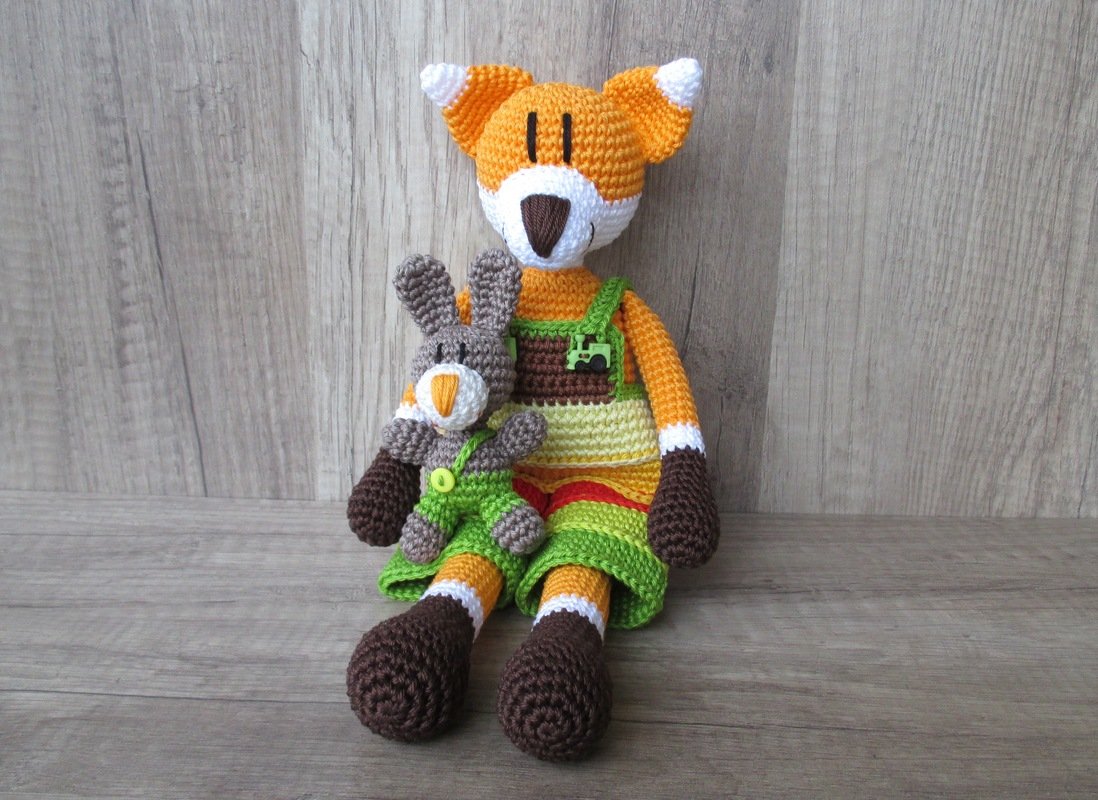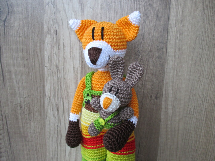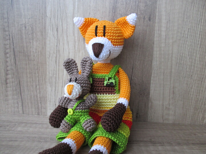 Ausführliche und gut bebilderte Häkelanleitung mit 20 Seiten und insgesamt 63 Bildern für den kleinen Fuchs Friedrich UND seinen besten Freund, den kleinen Hasen Karotte ♥