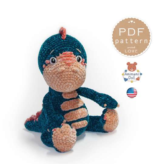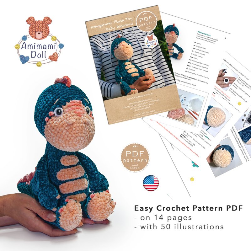 Cute Amigurumi Plush Dinosaur - Easy crochet pattern download PDF