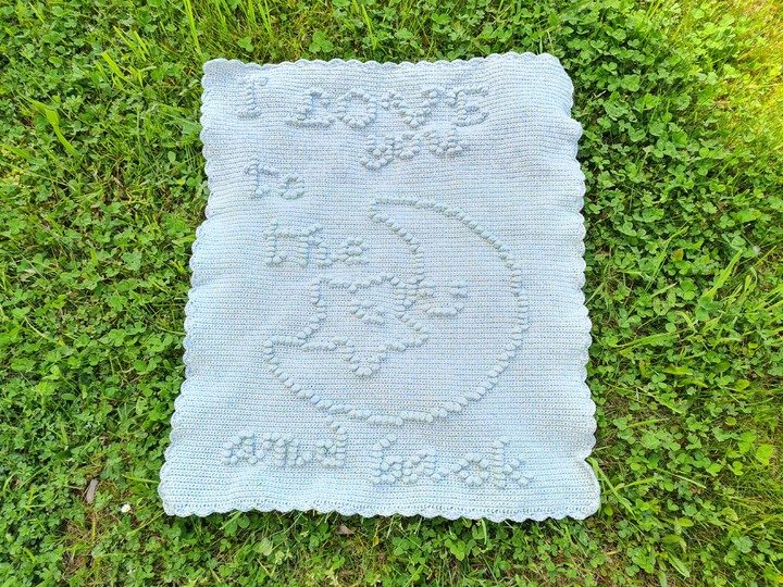 Ihr erhaltet eine schriftliche Anleitung für diese süße Babydecke die von unten nach oben gehäkelt wird.