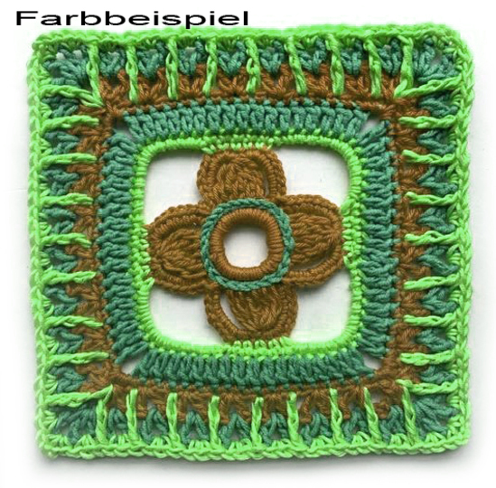 Man kann natürlich jede andere Wolle mit einer ähnlichen Lauflänge benutzen… Auch viele Farbkombinationen sind beim Granny Kreuzblume möglich!