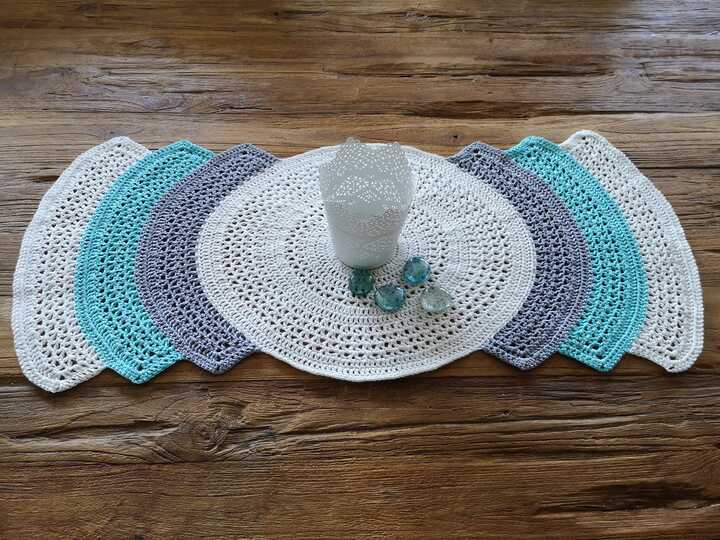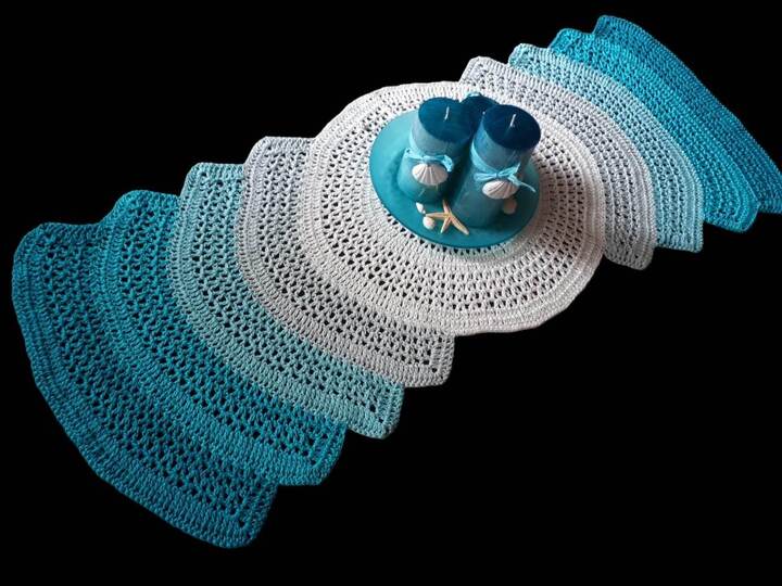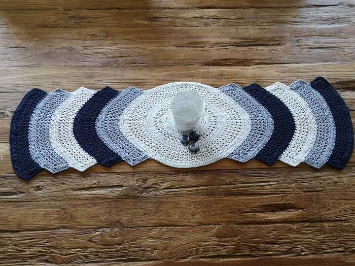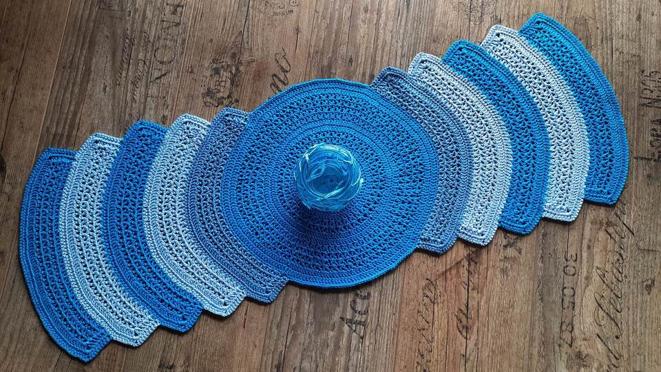 Mit dieser Anleitung häkelst du dir einen Tischläufer, den du in der Länge ganz leicht auf die größe deines Tisches oder Sidebordes abstimmen kannst. Jeder zusätzliche Bogen verlängert ihn um 5cm. Egal ob in maritimen Farben, weihnachtlich oder pastell, es wird immer ein Hingucker.