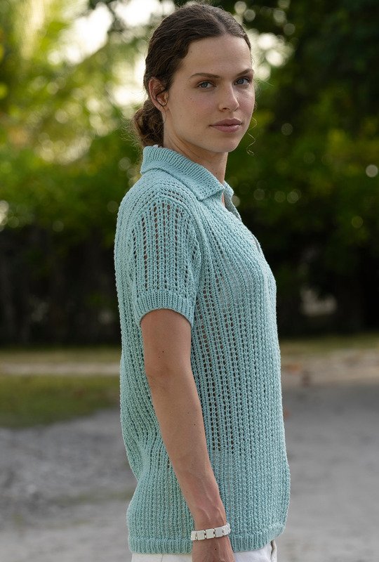 Sanftes Mintgrün ruft ganz allgemein positive Assoziationen hervor und vermittelt einerseits dynamische Frische, andererseits entspannte Ruhe. Wenn dann auch noch Grün im ökologischen Sinn hinzukommt, hast Du alles richtig gemacht. Zum Beispiel mit diesem klassisch geschnittenen Sommer-Shirt, das aus nachhaltiger Bio-Baumwolle entsteht. Das luftige Lochmuster, die gerade eingesetzten Kurzärmel und der modische Polokragen sorgt für die klassiche Note, die aber alles andere als langweilig wirkt.