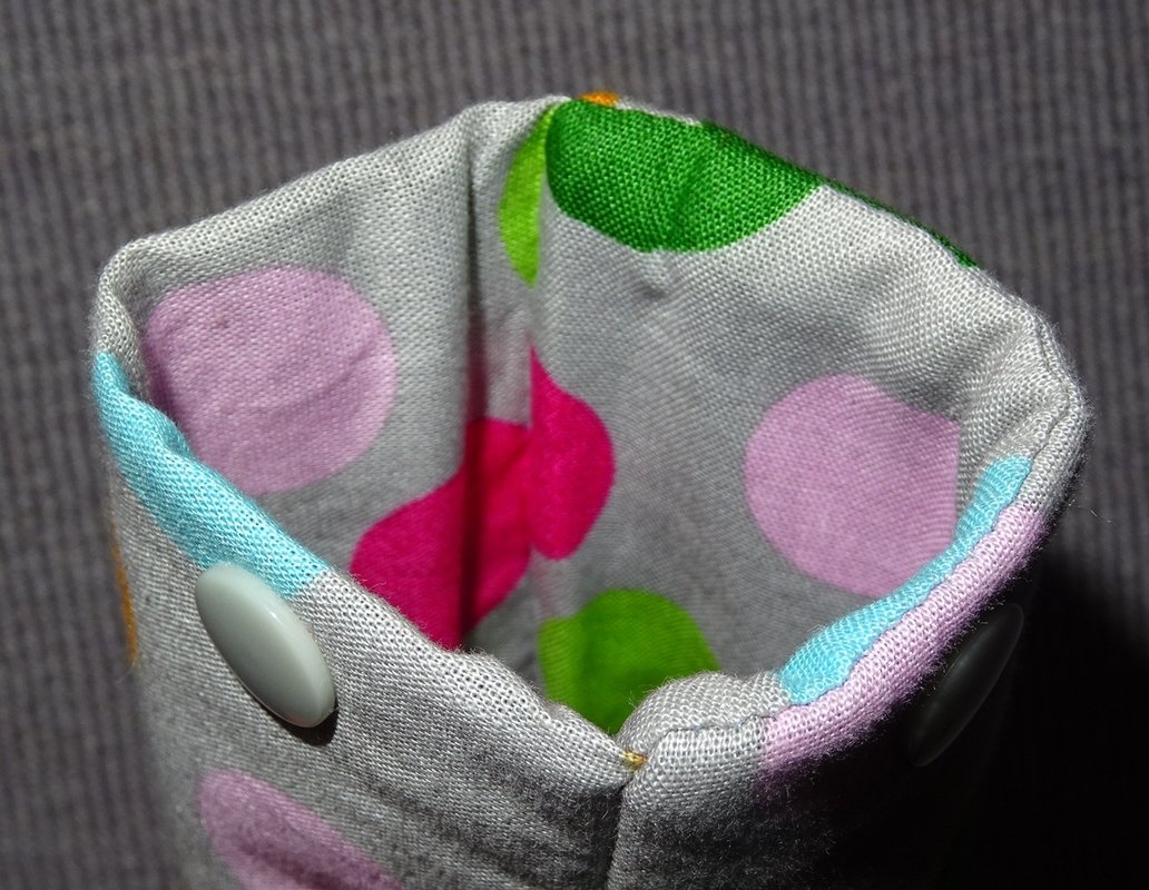 Baumwollstoff, Volumenvlies H630, Kordel und Knopf oder ein Druckknopf