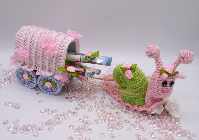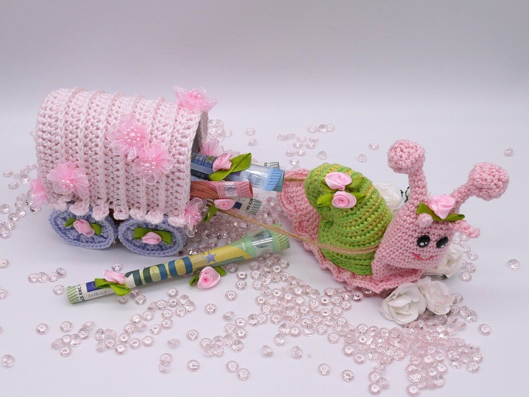 Verpacke Geldgeschenke auf besonders originelle Art und Weise mit unserem "Geschenkewagen mit Schnecke".
